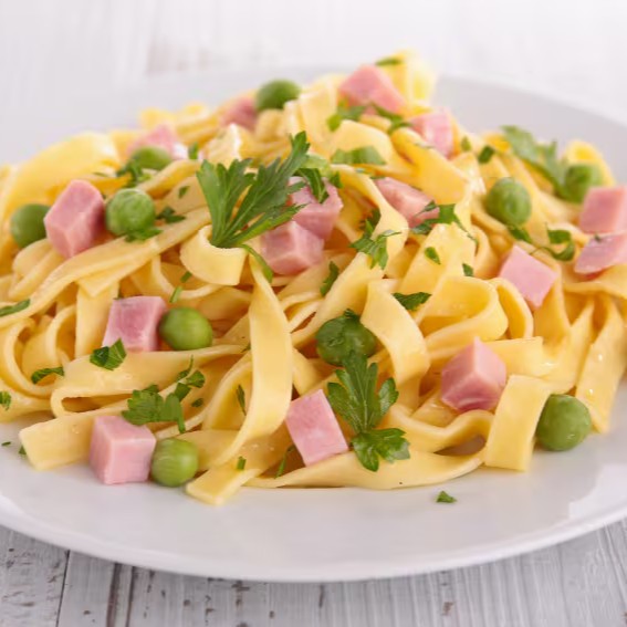 Escolha entre 4 tipos de macarrão, com molho à carbonara.