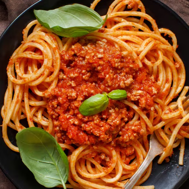 Delicioso molho a bolonhesa, com tomates fresco e carne de primeira qualidade.