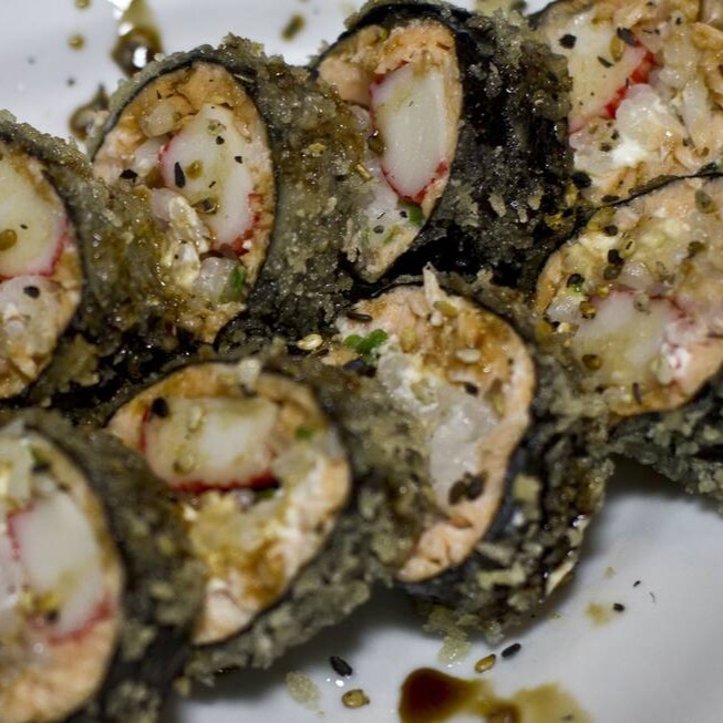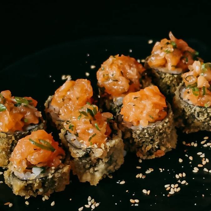 Temaki de salmão e cream cheese empanado e frito.