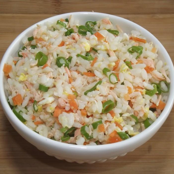 Arroz Japones, ovo, cenoura e cebolinha.