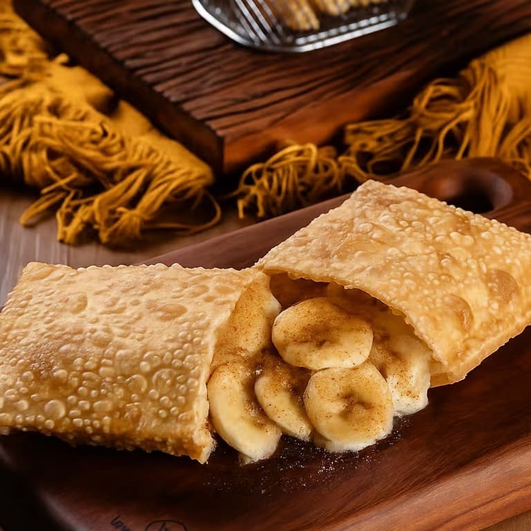 Pastel dourado e crocante recheado com banana, doce de leite e um toque de canela. Um sabor caseiro e irresistível que combina doçura e aconchego em cada mordida!