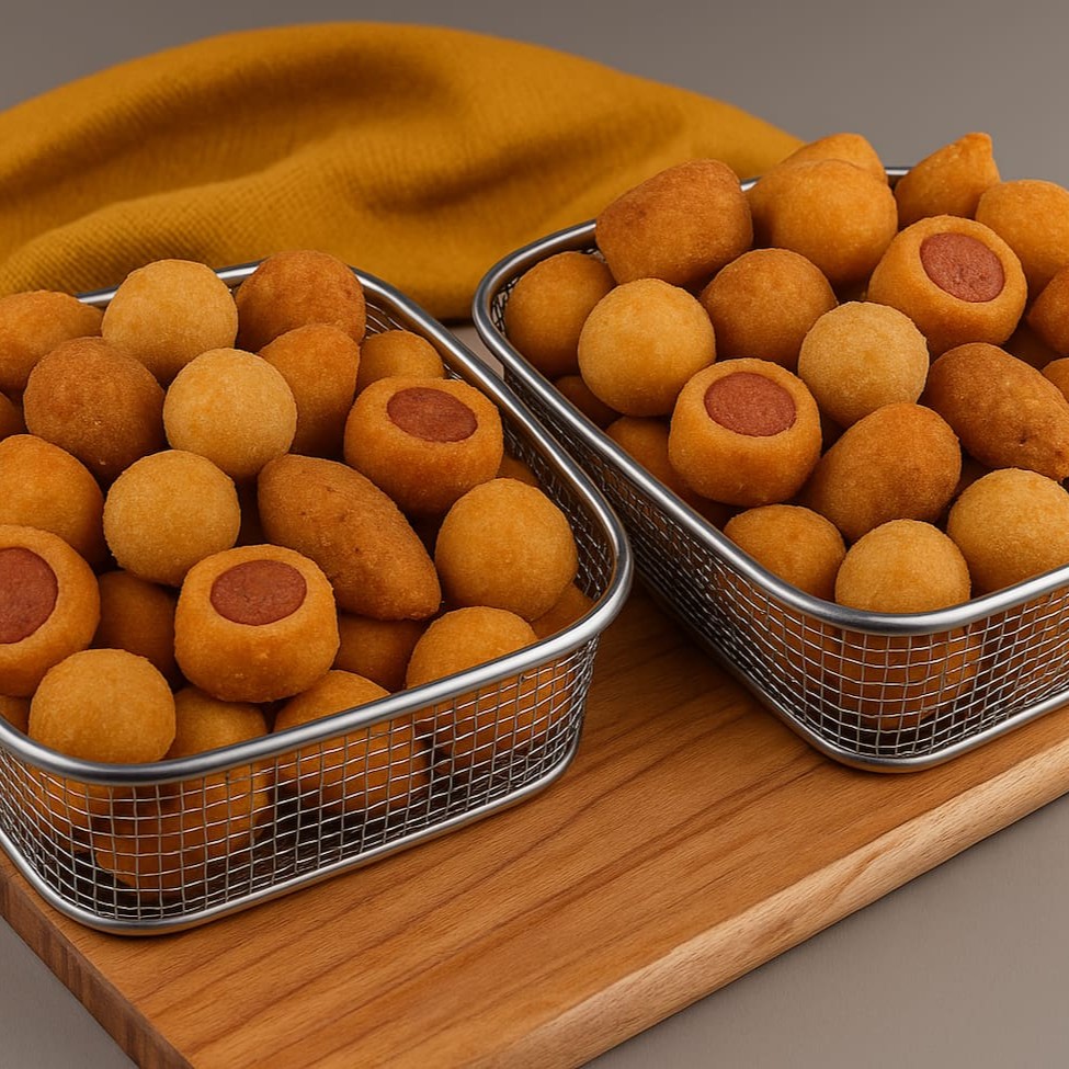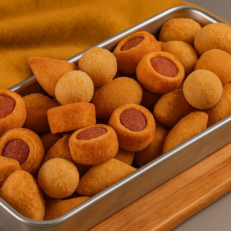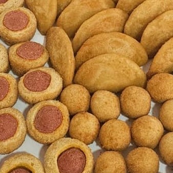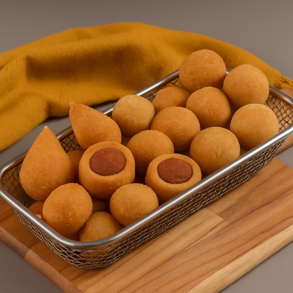 Sabor para qualquer ocasião! Mix com coxinhas, risoles, bolinhas de queijo e enroladinhos de salsicha. Perfeito para festas ou reuniões!