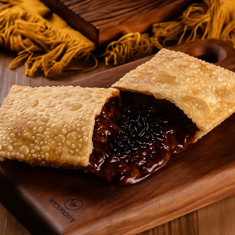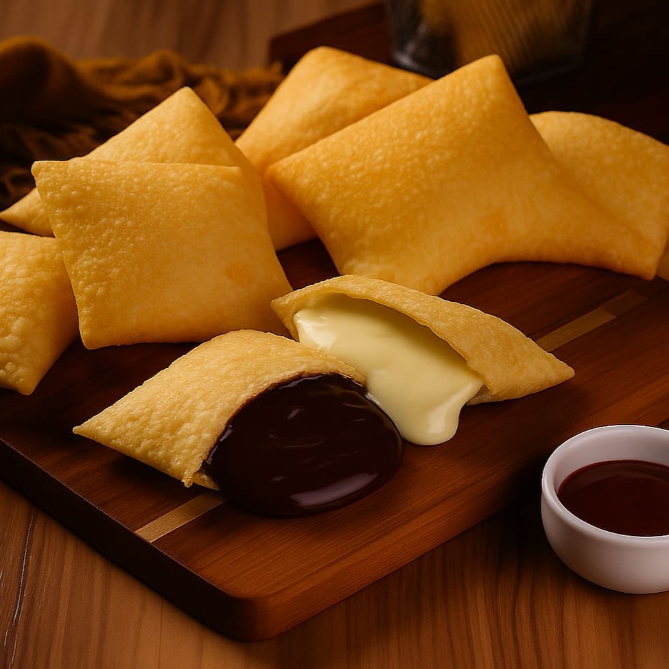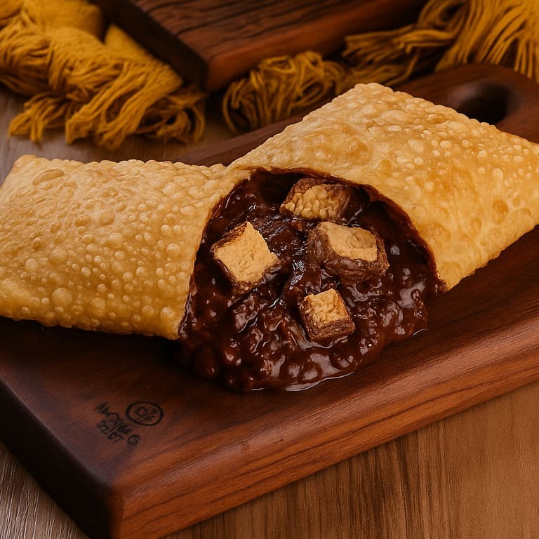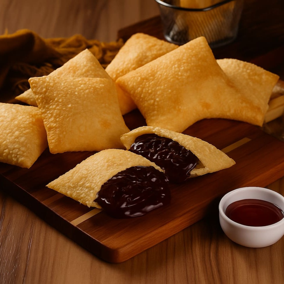 Pastel crocante recheado com brigadeiro cremoso feito com chocolate. Doce, macio e irresistível em cada mordida!