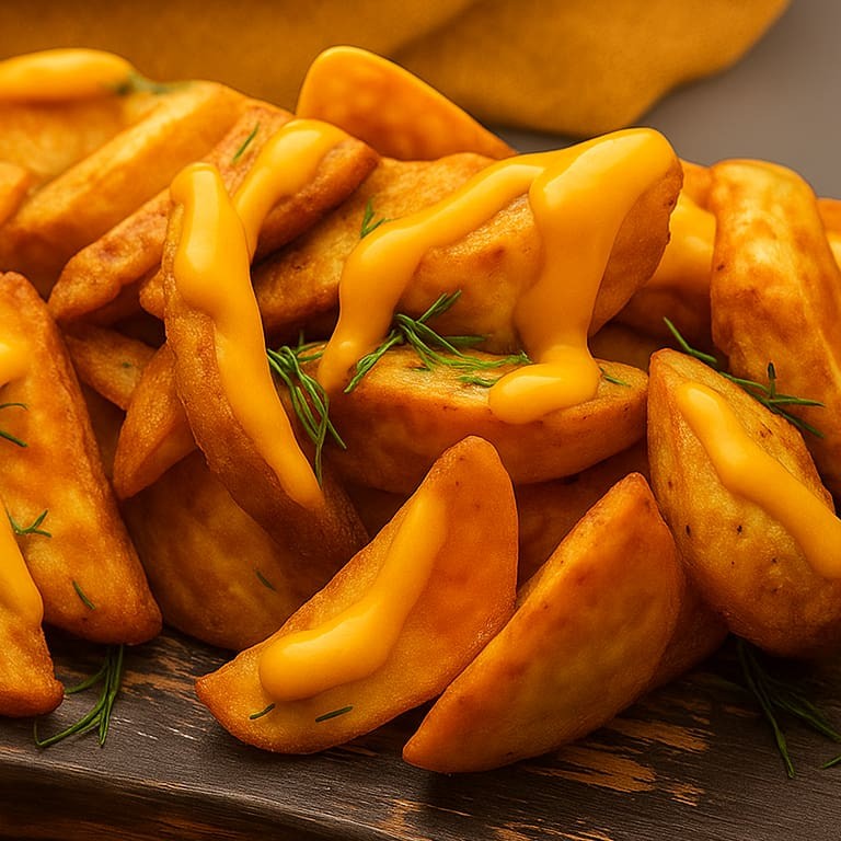 Batatas 400g cortadas em pedaços generosos cheddar, com casca, temperadas com ervas e especiarias até ficarem douradas e crocantes. Sabor artesanal e irresistível, perfeita para acompanhar qualquer refeição!