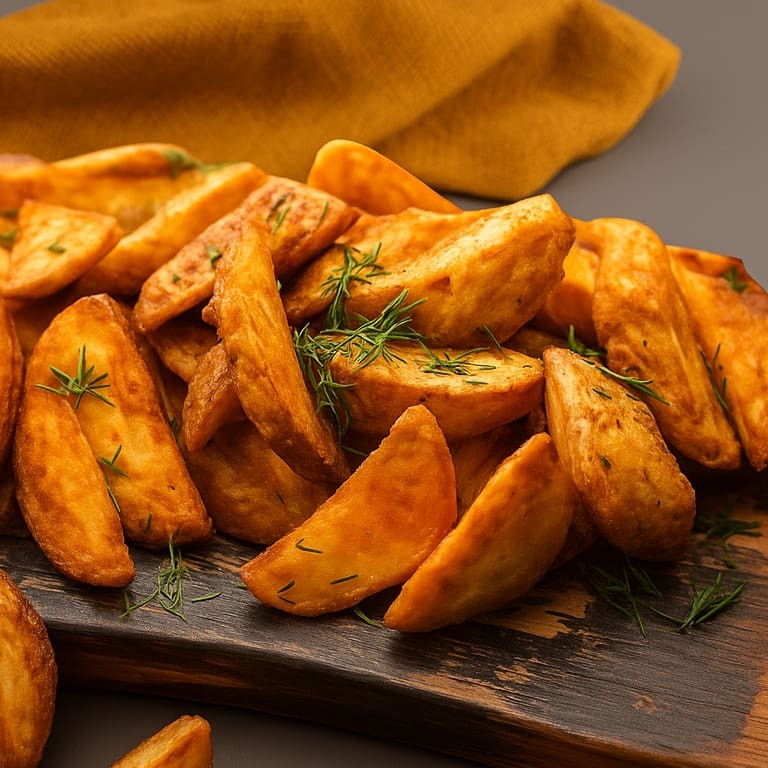 Batatas 400g cortadas em pedaços generosos, com casca, temperadas com ervas e especiarias e até ficarem douradas e crocantes. Sabor artesanal e irresistível, perfeita para acompanhar qualquer refeição!