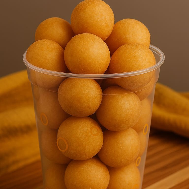 Claro! Aqui está a versão ajustada: **Descrição:** *Porção com 20 bolinhas de queijo crocantes por fora e cremosas por dentro, servidas no copo. Perfeito para matar a fome a qualquer hora.*
