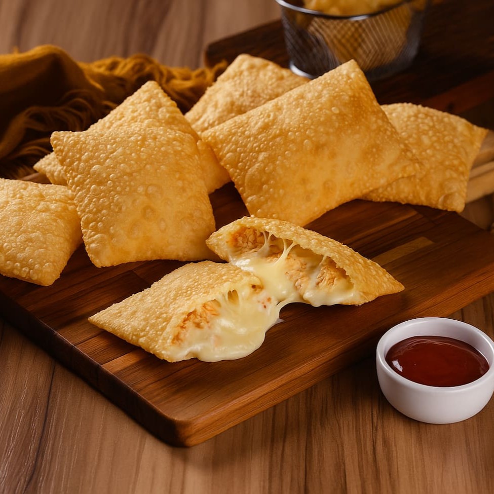 Recheio irresistível com mussarela, Catupiry e cheddar derretendo por dentro. Crocante por fora, cremoso por dentro!