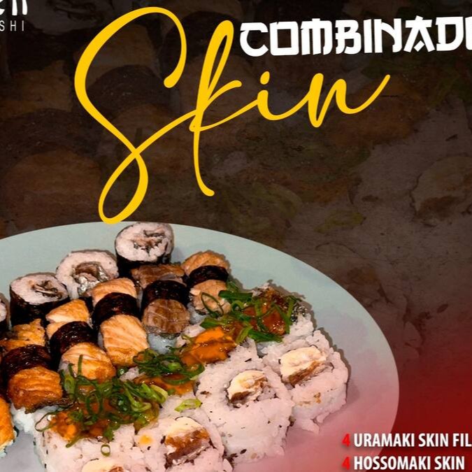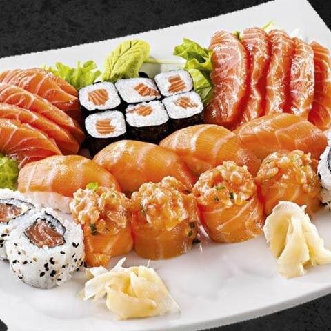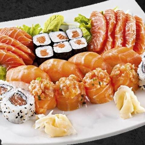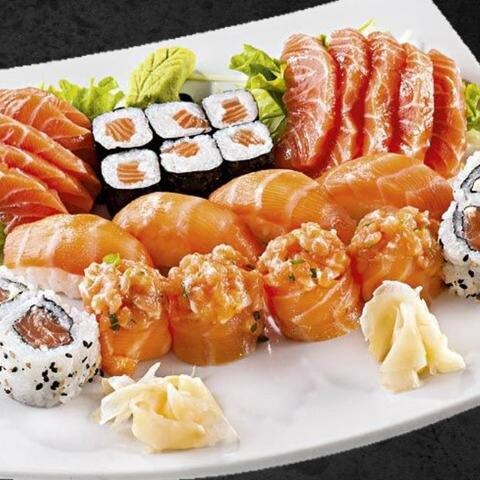 4 uramaki romeu e julieta, 4 uramaki filadelfia, 4 uramaki california, 4 uramaki filadelfia grelhado, 2 niguiri salmao, 2 niguiri peixe branco, 4 hossomaki salmao, 4 hossomaki skin, 4 hossomaki pepino, 8 hot filadelfia
