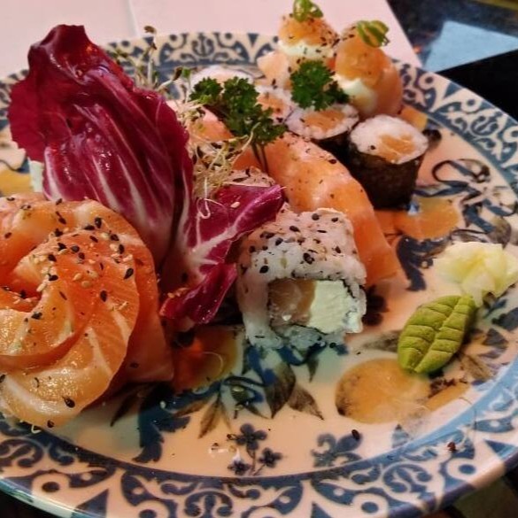12 sashimi, 16 uramaki, 12 hossomaki, 8 niguiri e 8 joy