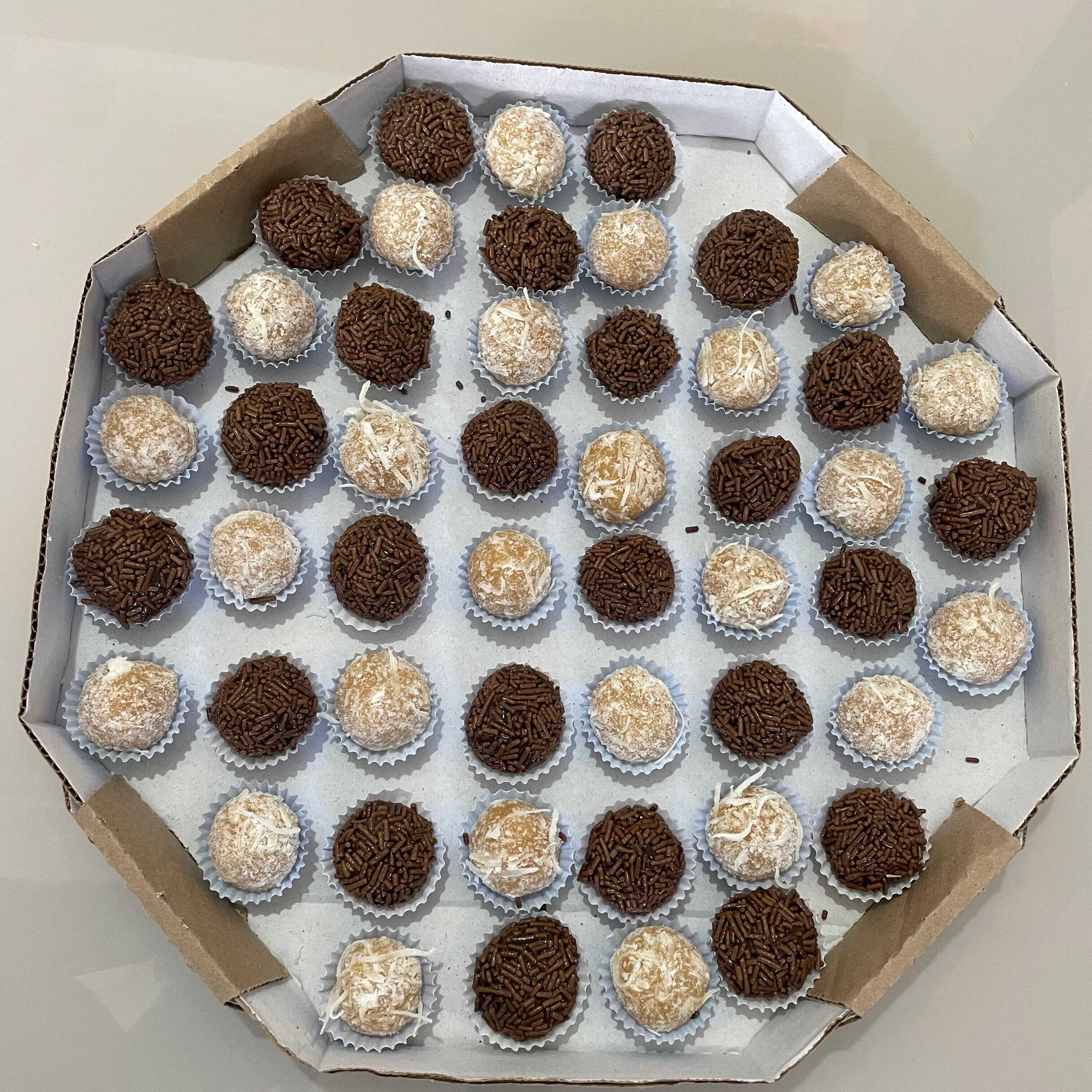 Combao contendo 25 brigadeiros e 25 beijinhos
