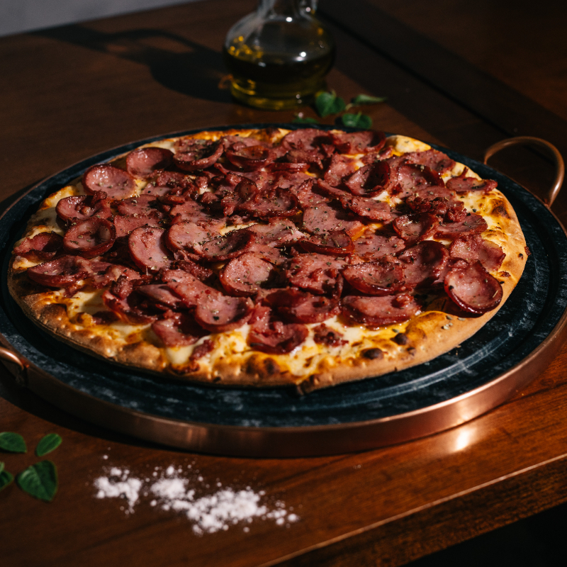A 'Pizza Grande do Dia - Calabresa' é a estrela da nossa categoria 'Mais Vendidos no '. Ela é cuidadosamente preparada com uma massa exclusiva da casa, macia e irresistível. O molho especial, feito com ingredientes selecionados, agrega um sabor inesquecível ao prato. Coberta por uma generosa camada de mussarela derretida e fatias de calabresa suculentas, a pizza é finalizada com uma pitada de orégano para realçar ainda mais o sabor. Este é um prato imperdível para os amantes de uma boa pizza!