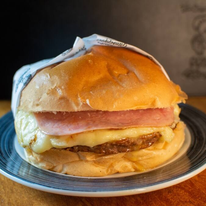 Nosso X-salada é uma escolha deliciosamente clássica. A base é um pão macio e fresco, que acomoda perfeitamente um suculento hambúrguer de carne bovina bem temperada. Acrescentamos uma fatia generosa de queijo derretido e outra de presunto de alta qualidade para trazer um sabor ainda mais rico e marcante. E para equilibrar, uma camada de alface crocante e um tomate fresco e suculento que, juntos, adicionam uma nota refrescante a este lanche irresistível. A escolha perfeita para qualquer momento do Dia!