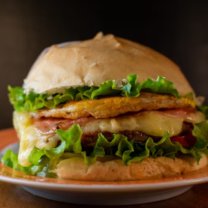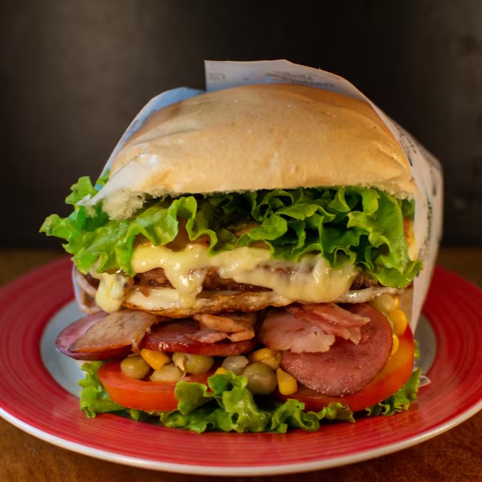 O X-egg, da nossa categoria 'Escolha seu lanche', é uma verdadeira sinfonia de sabores! A harmonia entre o pão fresquinho, o hambúrguer suculento, o queijo derretido e o presunto saboroso é incrível. Adicionamos um ovo frito à perfeição, que confere uma textura única ao lanche. E para finalizar, a crocância da alface e a doçura do tomate fresco. Uma combinação que promete agradar até os paladares mais exigentes!