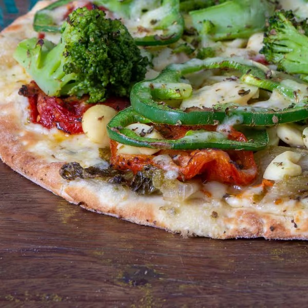 Mussarela, escarola, tomate seco, champignon, brócolis, pimentão e orégano