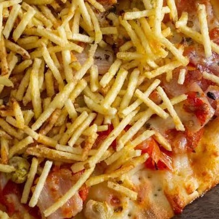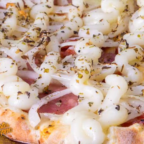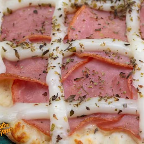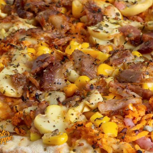 Mussarela, presunto, frango, milho verde, bacon, champignon e orégano