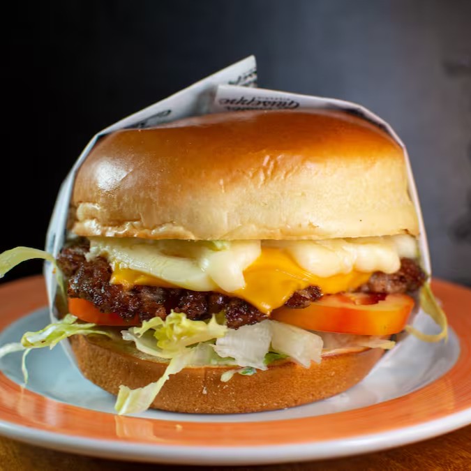 Um delicioso hambúrguer de 70 gramas (feito em ultra smash), queijo cheddar derretido, alface americano, tomate fresco, cebola crua, nosso molho especial e para completar o nosso pão de brioche