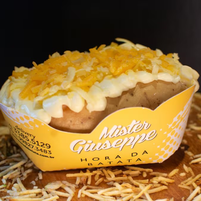 A nossa 'Batata Recheada de Provolone à Bolonhesa' é uma experiência gastronômica sem igual. Cada mordida revela o provolone derretido, que se une harmoniosamente ao requeijão cremoso, proporcionando uma textura deliciosamente suave. O molho à bolonhesa, preparado com intenso sabor, adiciona a camada final de sabor, enquanto a batata palha, crocante e dourada, confere o toque final perfeito. Este prato é uma verdadeira explosão de sabores e texturas, perfeito para os amantes de batata recheada.