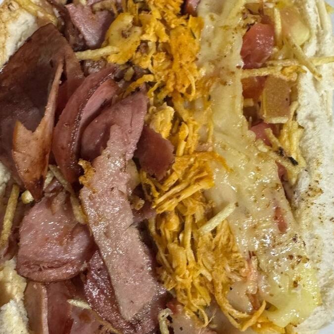 Lombinho, Mussarela, Tomate, Milho, Batata Palha, Catchup E Maionese
