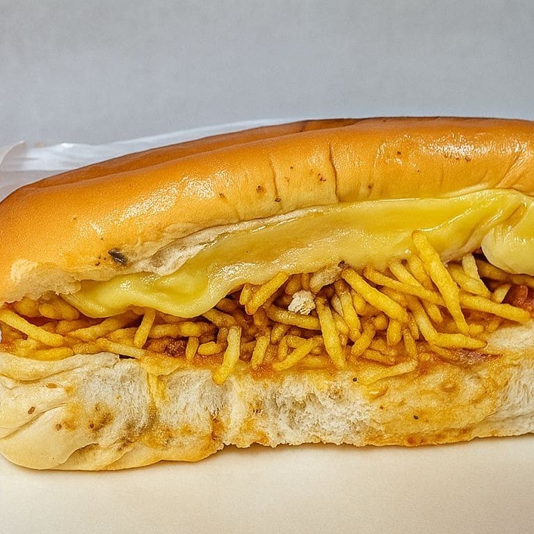 Pão, vina, maionese, tomate, milho, batata palha, calabresa, queijo mussarela e catchup.