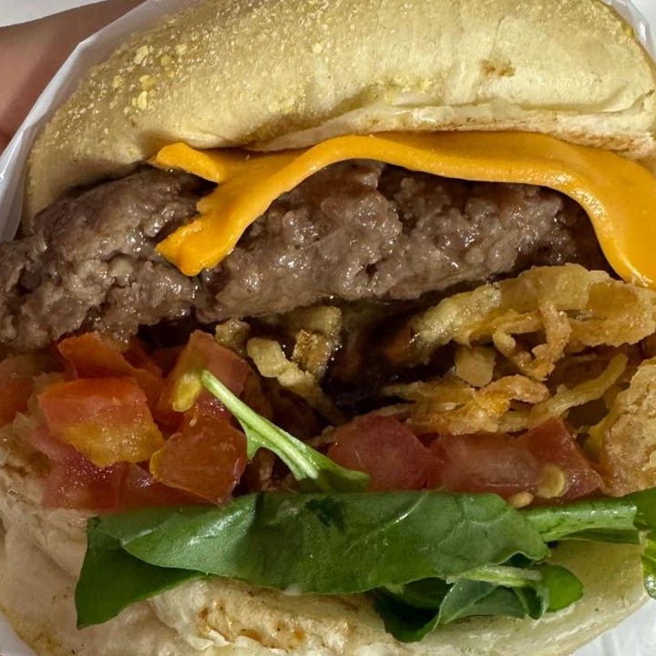 Pão Frances, Rucula, Cebola Crocante, Tomate, Barbecue, Bily Jack E Queijo Cheddar E Alcatra Picada