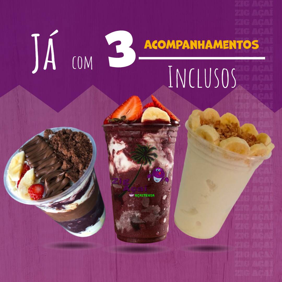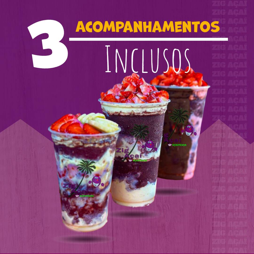 Copo de 770ml Obs!!!: Trabalhamos somente com frutas frescas, pelo fato das frutas ficarem no meio do açaí e em media as entregas levam entre 10 a 30 minutos as frutas podem congelas. Monte seu copo de açaí do seu jeito -Um sabor de raspa de sorvete. -Três acompanhamentos. * Morango * Amendoim * Banana * Calda de chocolate * Abacaxi * Calda de morango * Granola * Chocoball * Leite em pó * Confete * Leite condensado Grátis 1 tubetes sabor baunilha.