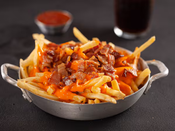 400g de batata frita com cheddar e bacon(acompanha 1 molho)