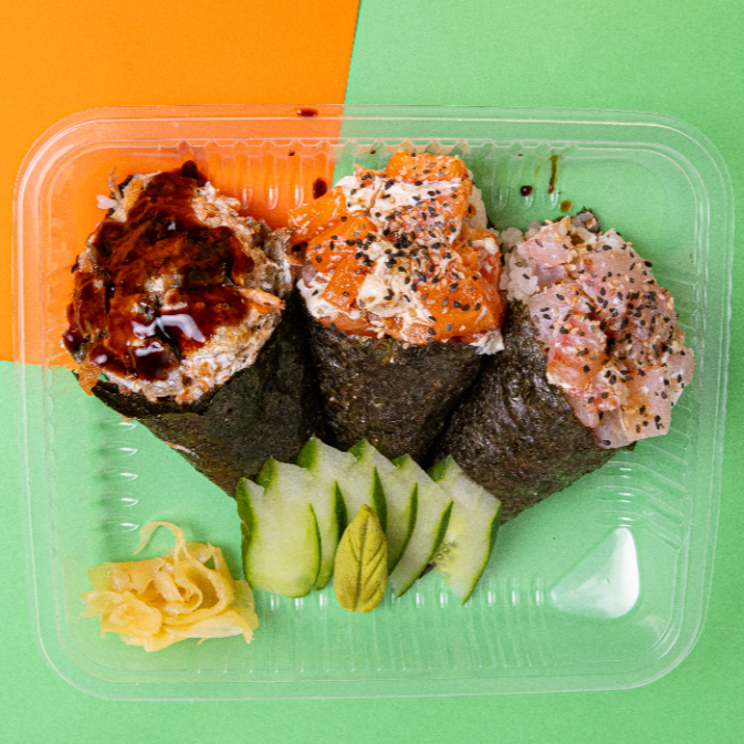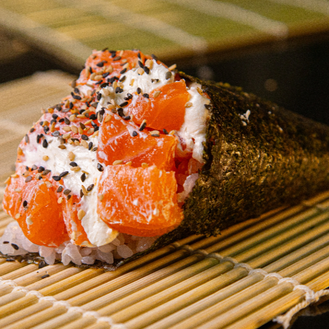 01 temaki salmao com cream cheese, 01 temaki tilapia, 01 temaki skin