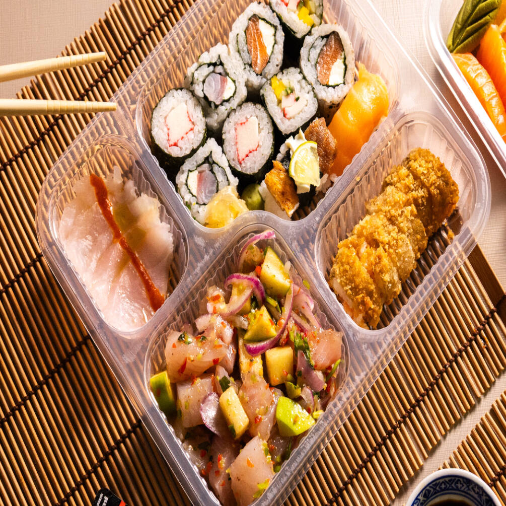 60 peças :18 hots variados ( 12 hot salmão e 06 hot tilápia)30 sushis variados (5 salmão com cream cheese, 5 skin com cream cheese,5 tilápia com cream cheese,5 califórnia, 5 tomate seco e 5 kani)06 niguiris (2 salmão, 2 kani, 2 skin)06 Bolinhosnão fazemos alterações no prato.*imagem ilustrativa