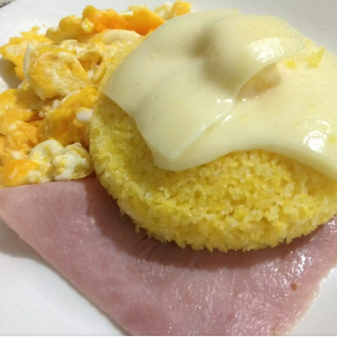 FLOCÃO DE MILHO, OVO, MUÇARELA, PRESUNTO, MANTEIGA E SAL.
