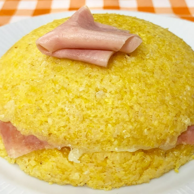 Flocão de milho, presunto, muçarela, manteiga e sal.