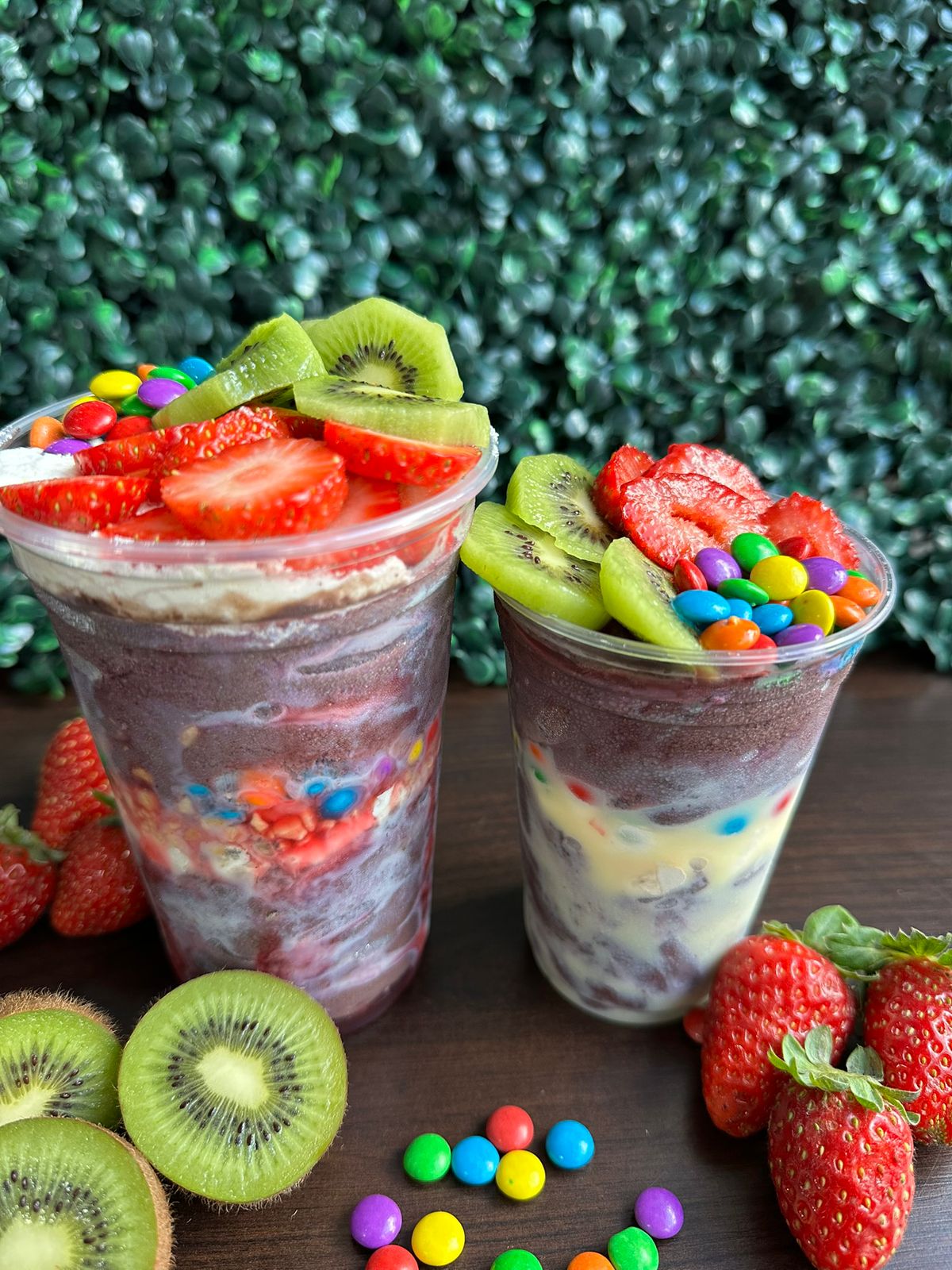 Delicioso açaí 2 .400 ml com saborosos acompanhamentos. Monte seu açaí do seu jeito! obs. Não Enviamos Itens Separados.