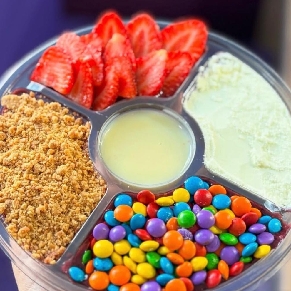 Escolha ate adicionais: Leite condensa,leite ninho,m&m paçoca,granola,morango,banana creme de avelã,calda de chocolate chocoboll,calda de morango e amendoim