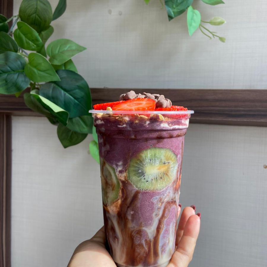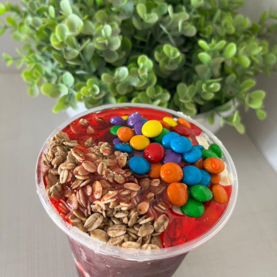 Açaí De 700 Ml Com Leite Em Pó, Granola, Confete, Calda De Chocolate.