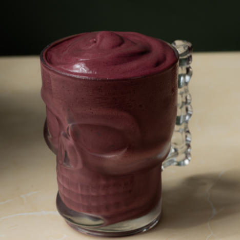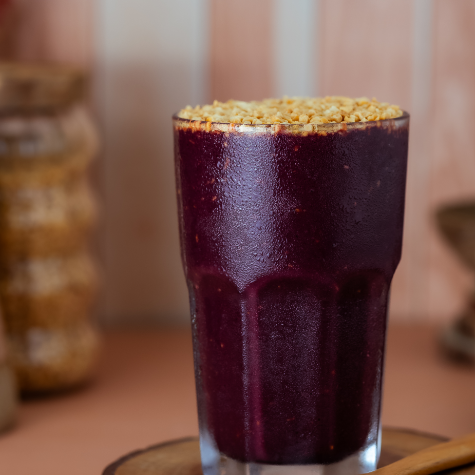 Uma batida deliciosa com Açaí, Leite, Banana, Ovo, Pó de Guaraná e Amendoim.