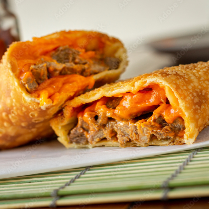 Satisfaça seu paladar com o nosso Pastel de Frango, uma obra-prima da culinária brasileira. Com uma massa levemente aerada e irresistivelmente crocante, envolve um generoso recheio de frango suculento, que se esconde à espera de ser descoberto sob a crosta dourada e estaladiça.