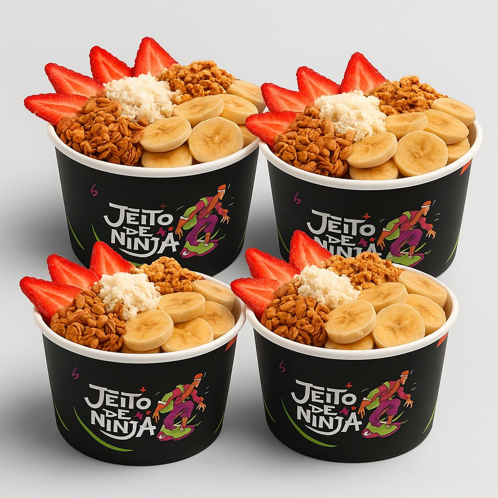 Acompanhamentos: Banana, granola, leite condensado, leite em Pó e Paçoca.