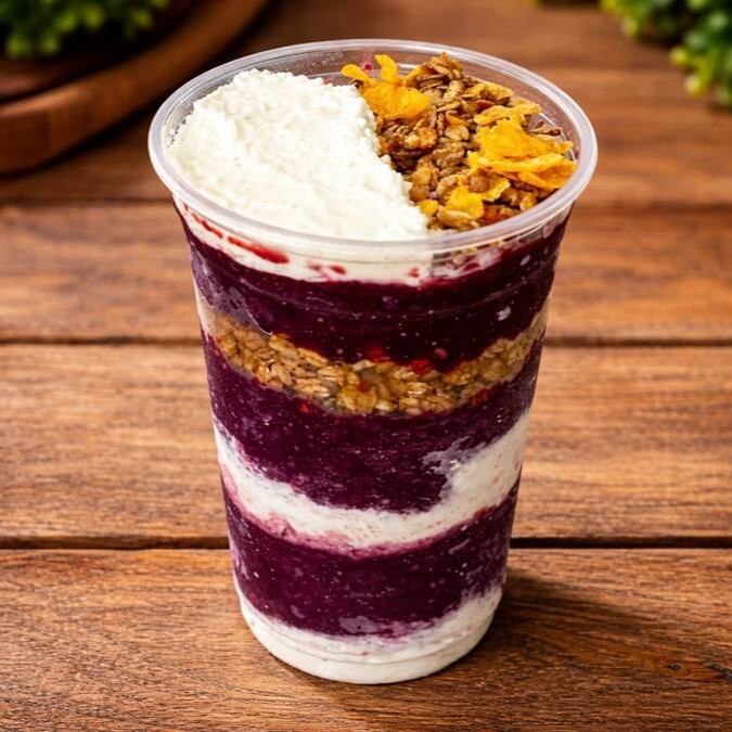 Açaí no copo de 400ml com granola, leite em pó e leite condensado