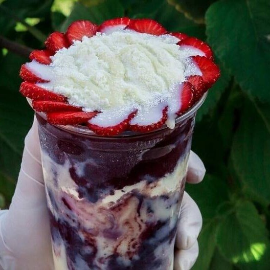 Açaí no copo de 300ml com leite Ninho, granola e leite condensado