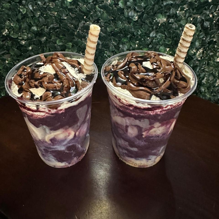 2 Copos de Açai com creme avelã , banana , leite em pó ,paçoca ,leite condesando e calda de chocolate!
