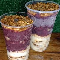 2 copos de açaí de 300ml + 4 acompanhamentos (banana, granola, leite condensado e leite em pó).