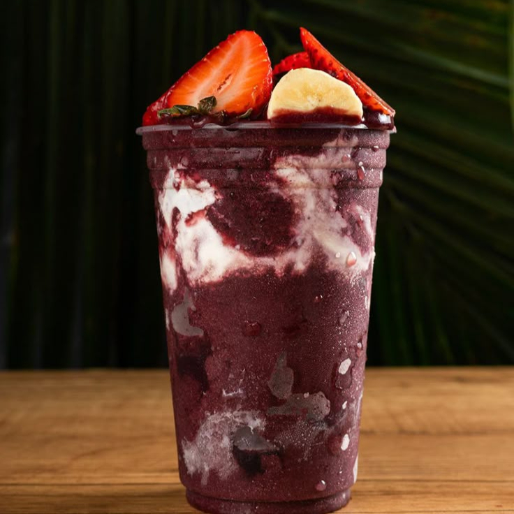 Deliciosa batida de açai com banana, leite em pó e leite condesando + cobertura!