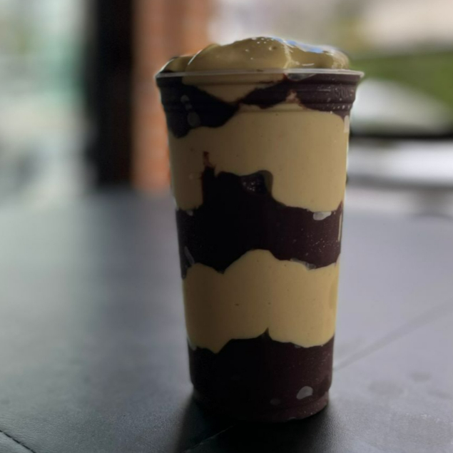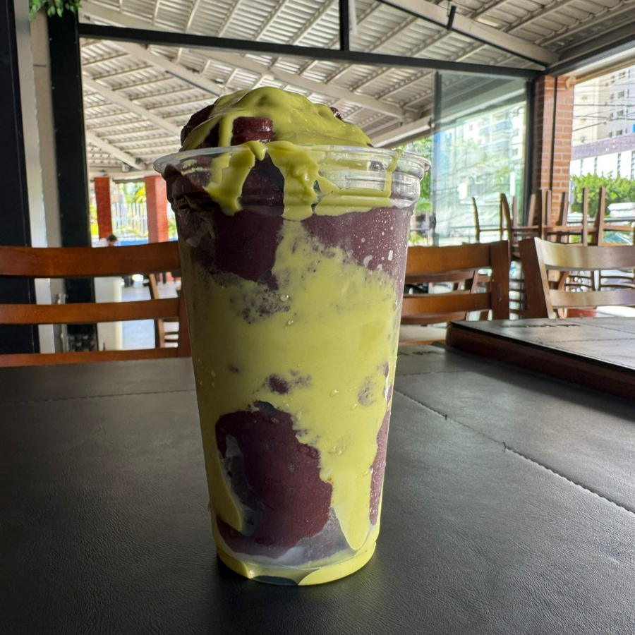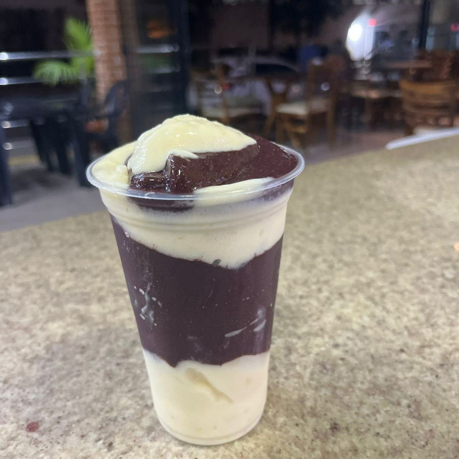 Açaí tradicional com creme artesanal de cupuacu em camadas