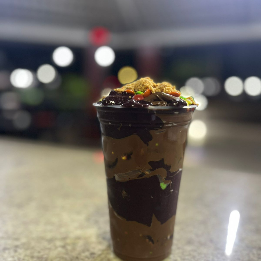 Açaí tradicional com Nutella, confetes e pacoquinha em camadas