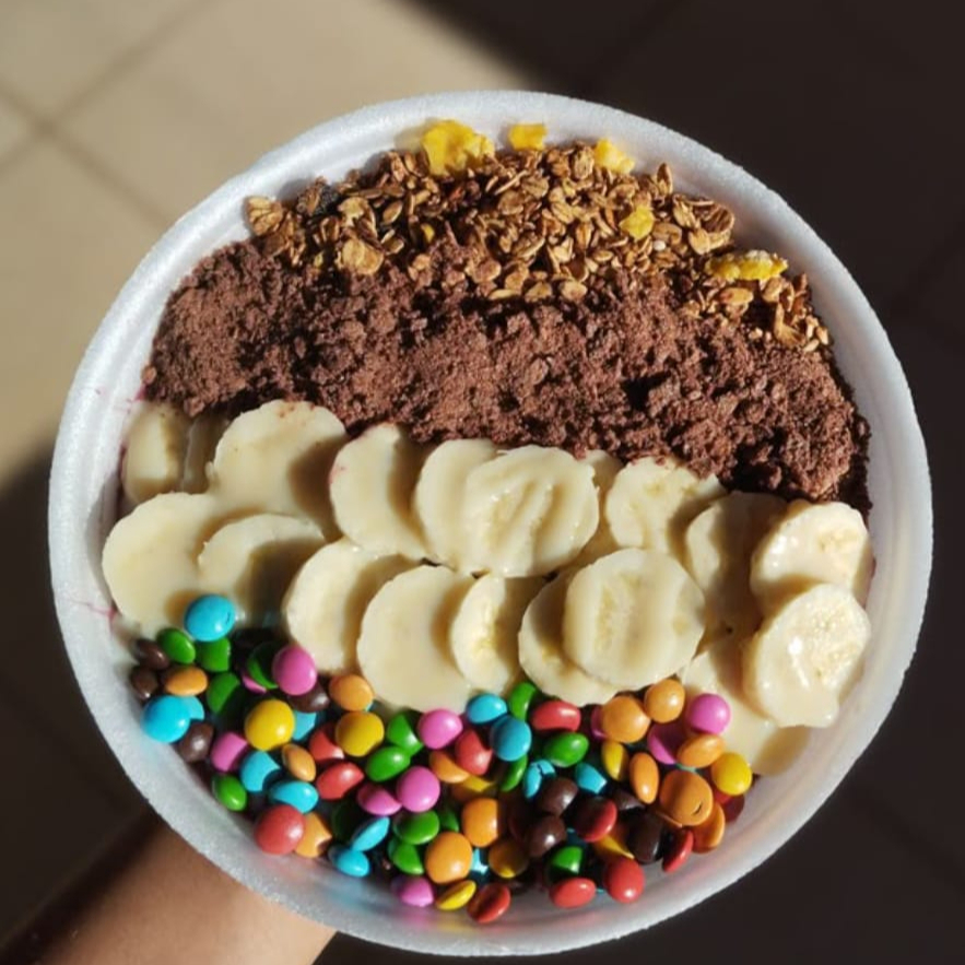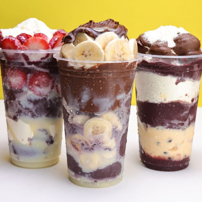 Delicioso trio de açaí em camadas, com acompanhamentos de sua escolha para curtir com a galerinha.