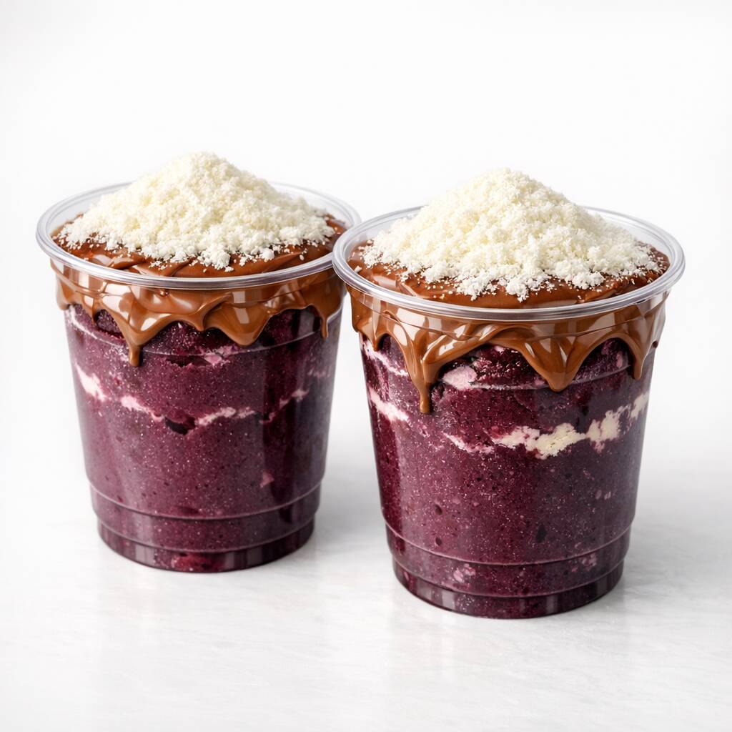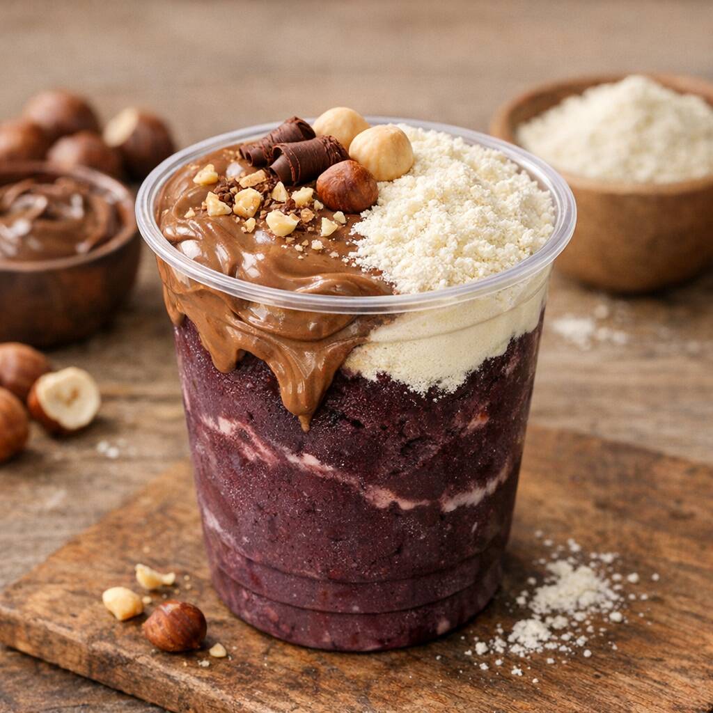 02 Copos De Açaís 300 Ml + Creme De Avelã + Leite Em Pó