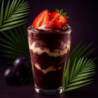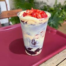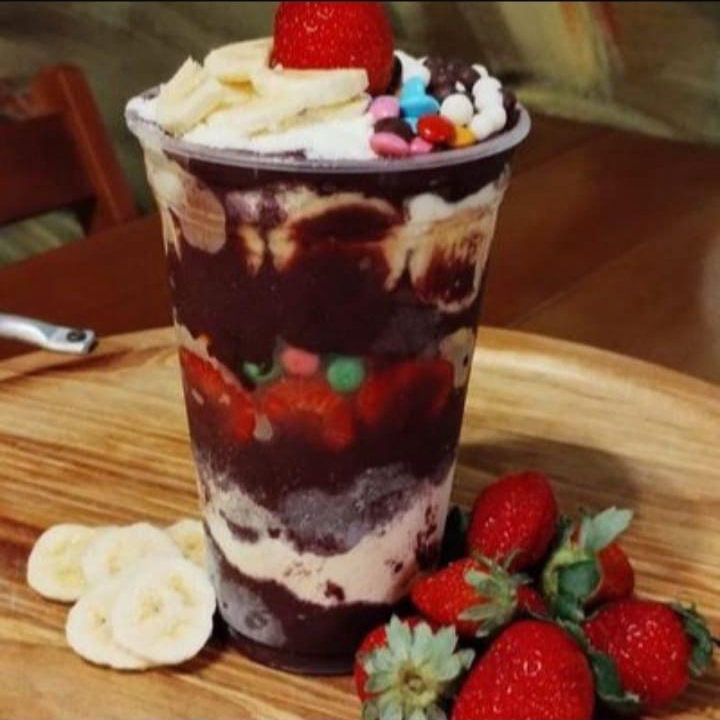Açai com delicioso creme de leitinho, leite em pó e Morango