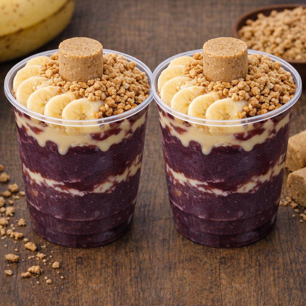 02 Copos De Açai Da Casa 500 Ml + Creme De Avelã + Banana