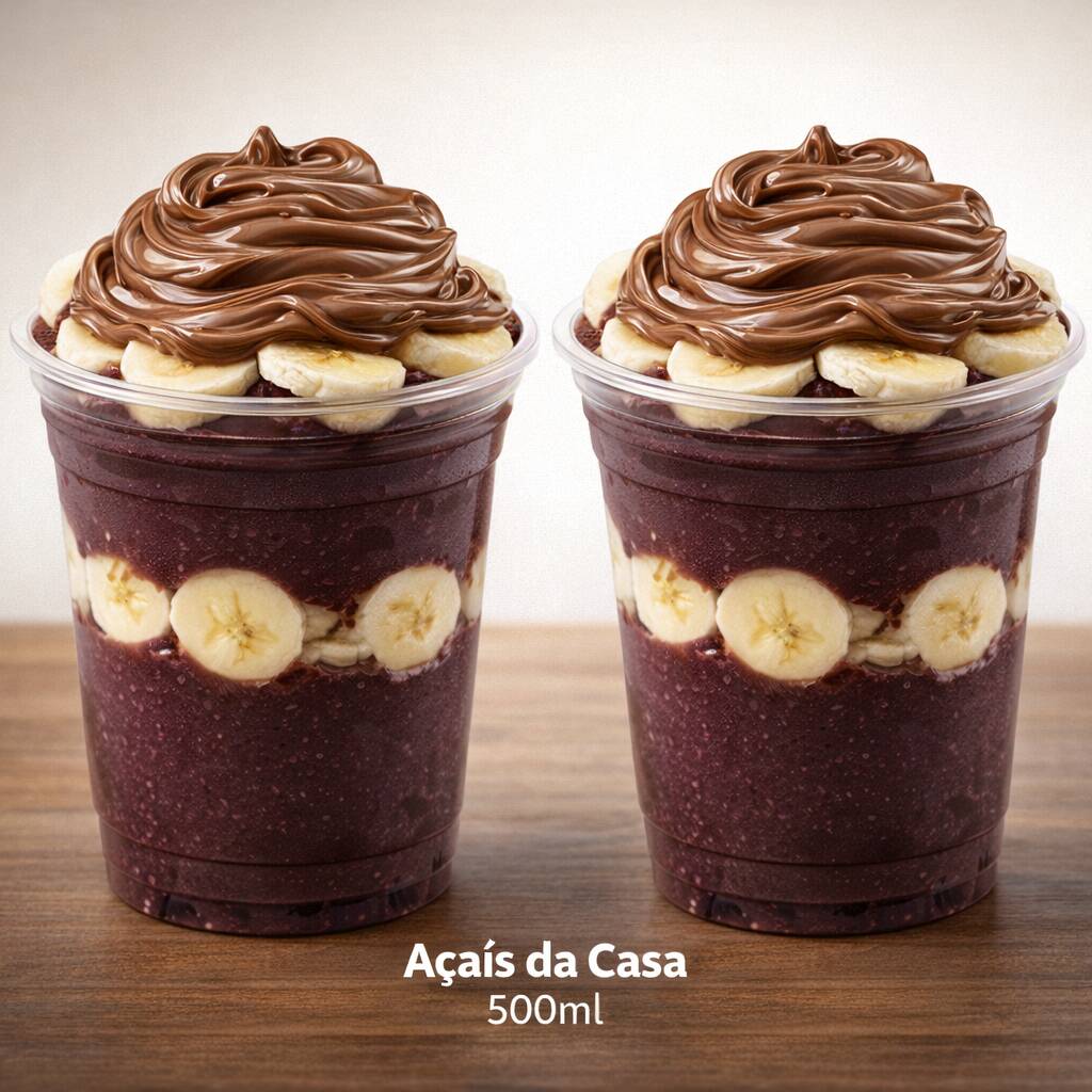 02 Açaí 500 ml + 4 adicionais grátis ( Banana, granola, Leite condensado e Paçoca) - imagem ilustrativa