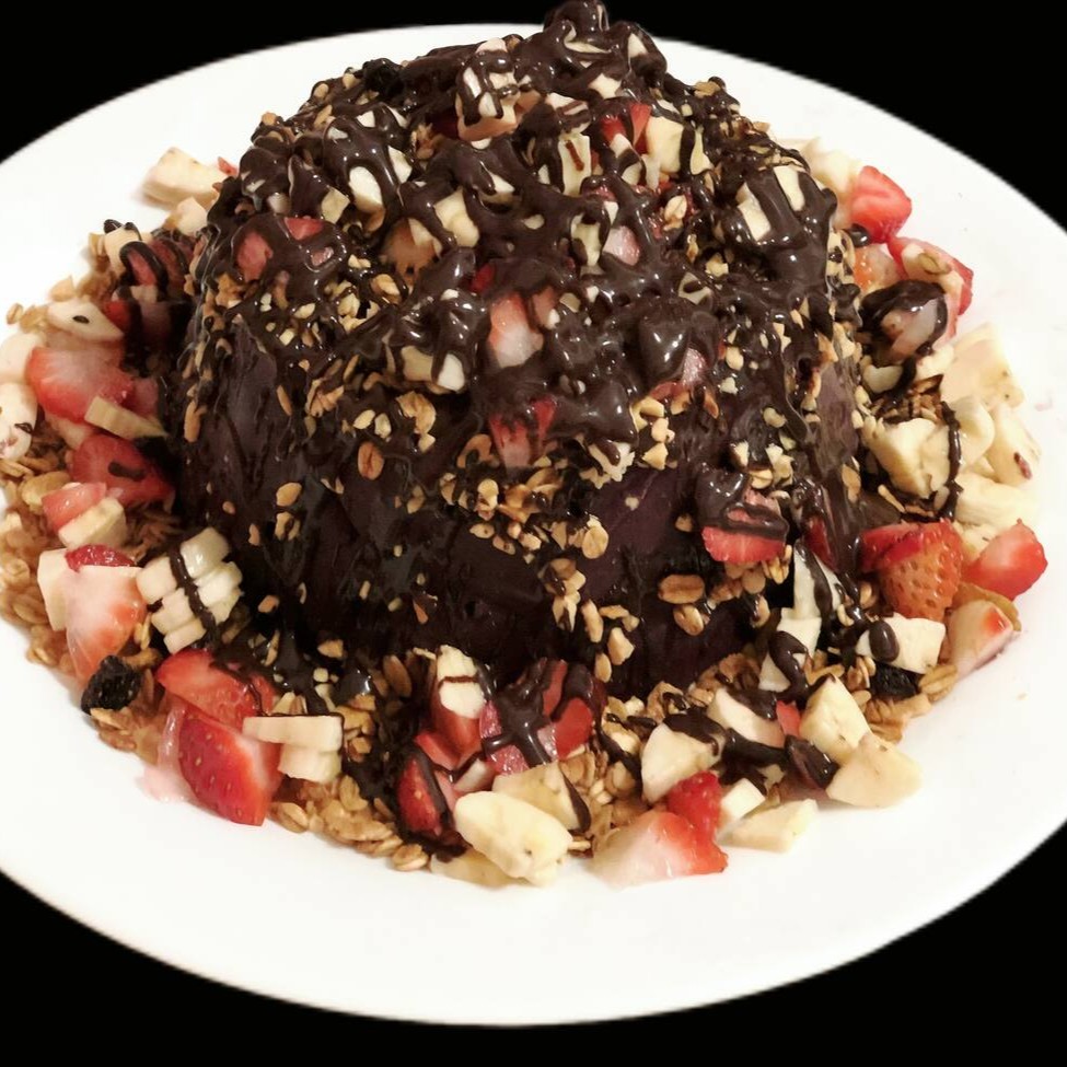 2 vulcões de 500ml completíssimo - (Acompanha: Açaí ou cupuaçu, granola, leite condensado, leite em pó, creme de avelã, morango e banana)! Compartilhe ou se delicie em dobro!