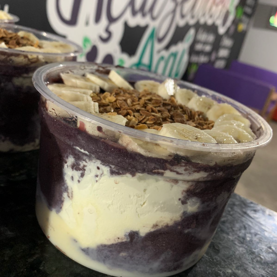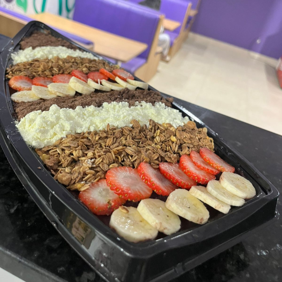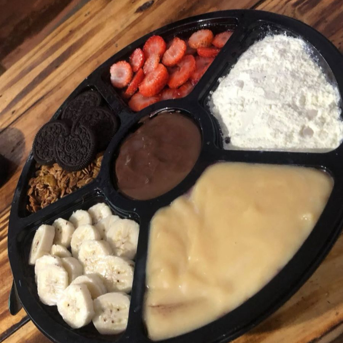 banana. morango, leite condensado, leite em po, ovomaltine, granola.